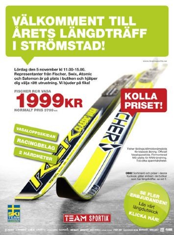 Inbjudan till längdåkningsträff i butiken Team Sportia Strömstad den 5:e november. Klicka här och läs mer